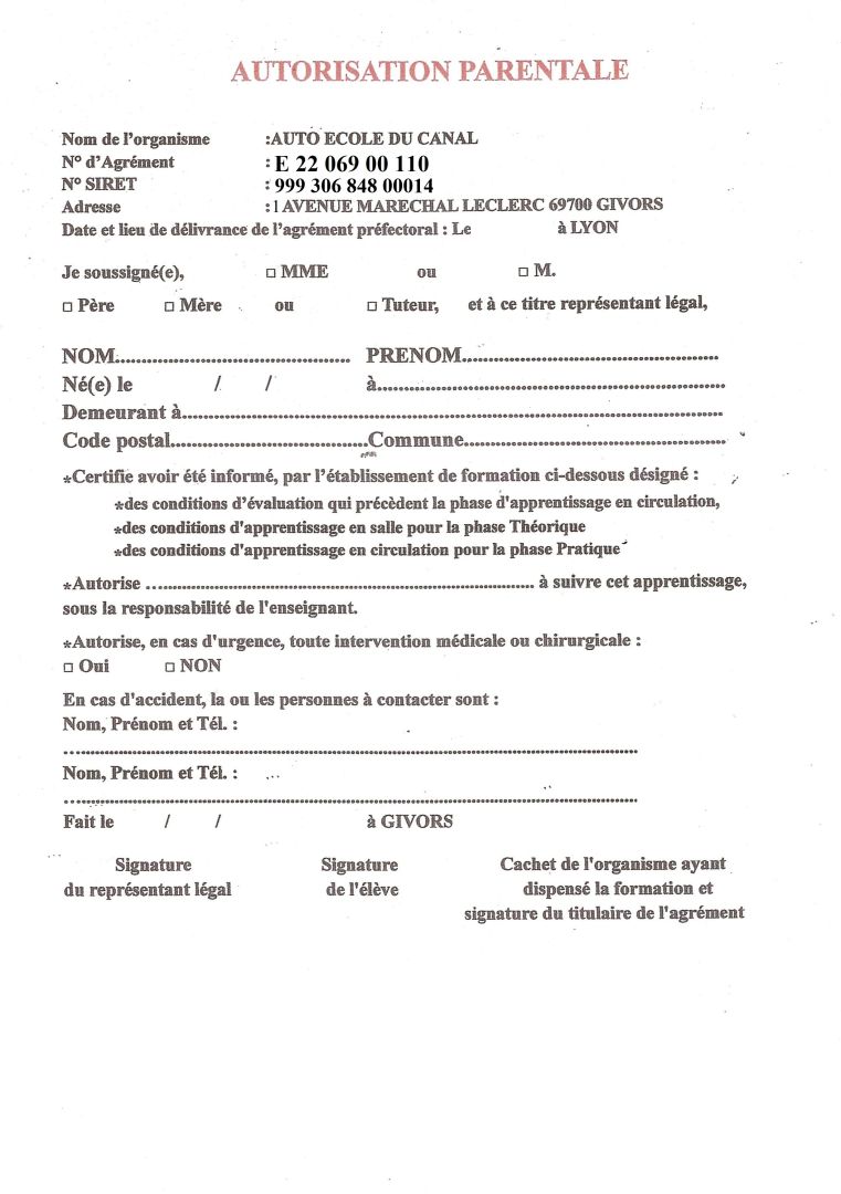 AUTORISATION PARENTALE